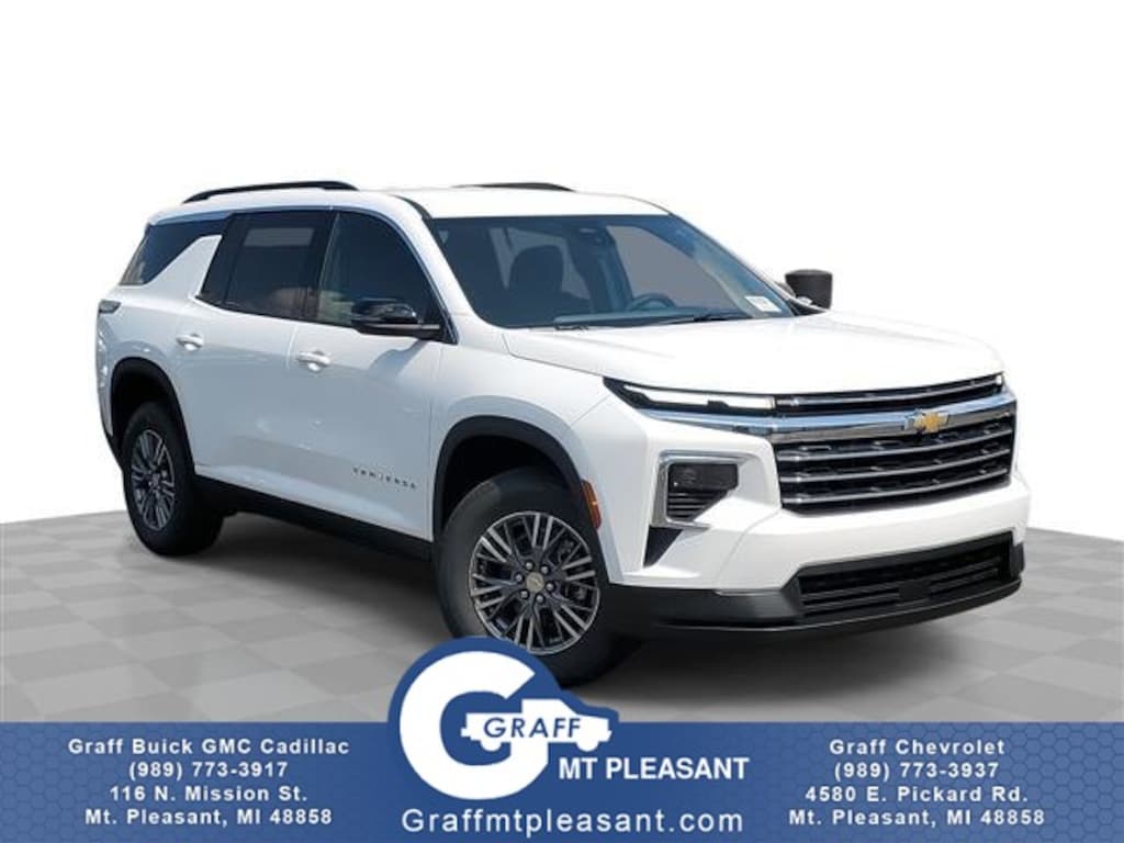 Here at Graff of Mt. Pleasant, we pride ourselves on providing the best service possible and leaving our customers with a smile. Whether the vehicles are on the lot or still in transit, feel free to call us or stop in to the dealership and we will be happy to answer any questions you may have. We have a wide variety of GM vehicles available. Check out our inventory and contact us to bring home your perfect vehicle today! Want more room? Want more style? This Chevrolet Traverse FWD LT is the vehicle for you. You appreciate the finer things in life, the vehicle you drive should not be the exception. Style, performance, sophistication is in a class of its own with this stunning Chevrolet Traverse FWD LT. The Chevrolet Traverse FWD LT will provide you with everything you have always wanted in a car -- Quality, Reliability, and Character. This is the one. Just what you've been looking for.